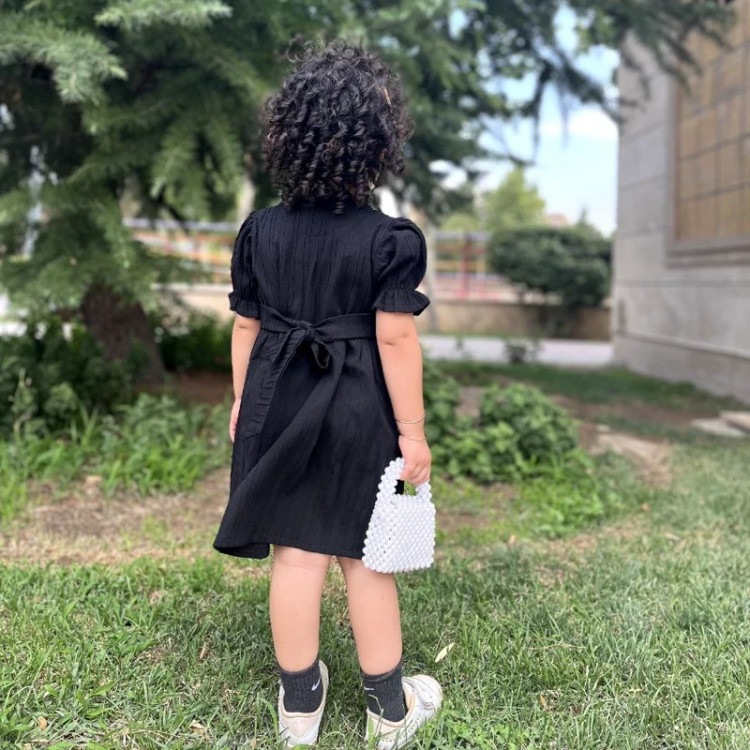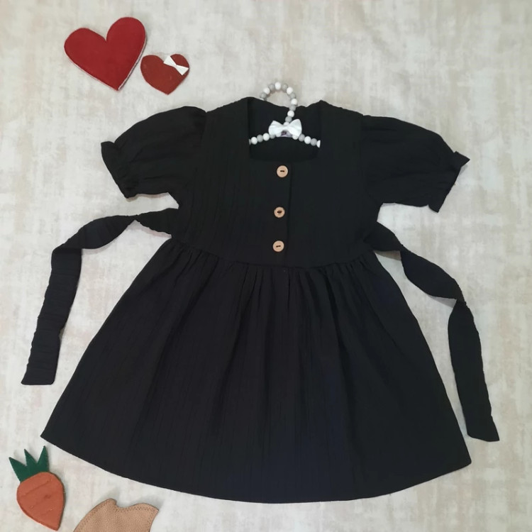 پیراهن سارافن مشکی آستین چیندار😍