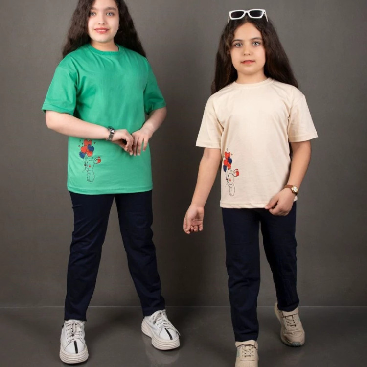 کد محصول 2023 ست تیشرت شلوار دخترونه پنبه بهاره