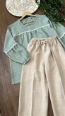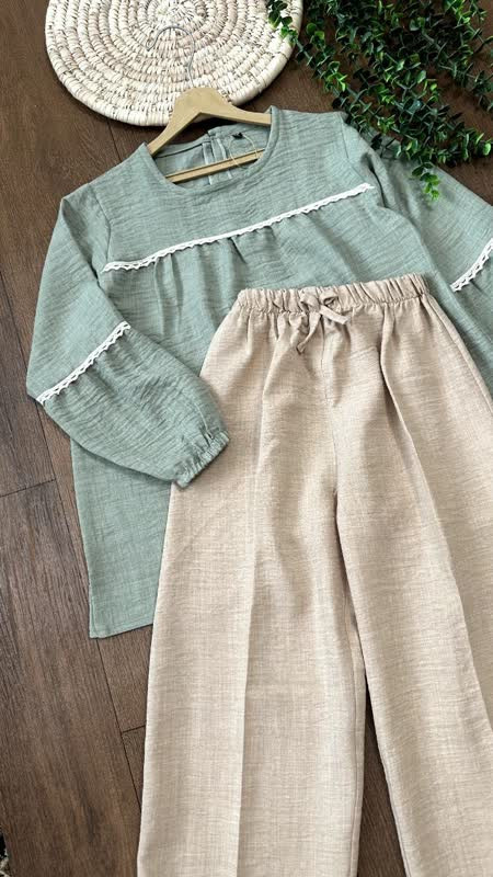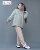 رنگ : تک رنگ شومیز سبز شلوار کرم